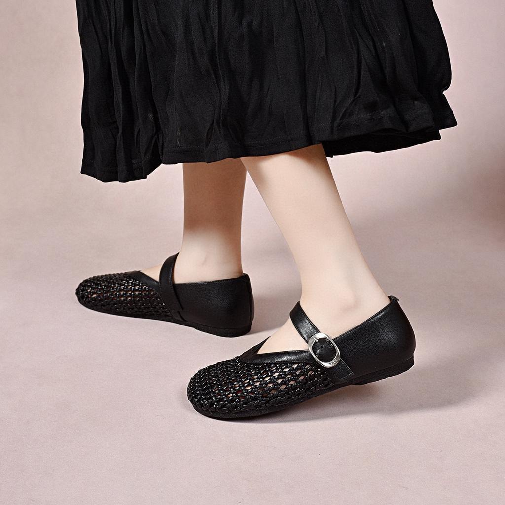 Damen Sommer hohle gewebte pastorale Schuhe mit runder Spitze, Slipper, Mary Jane Schuhe für Damen