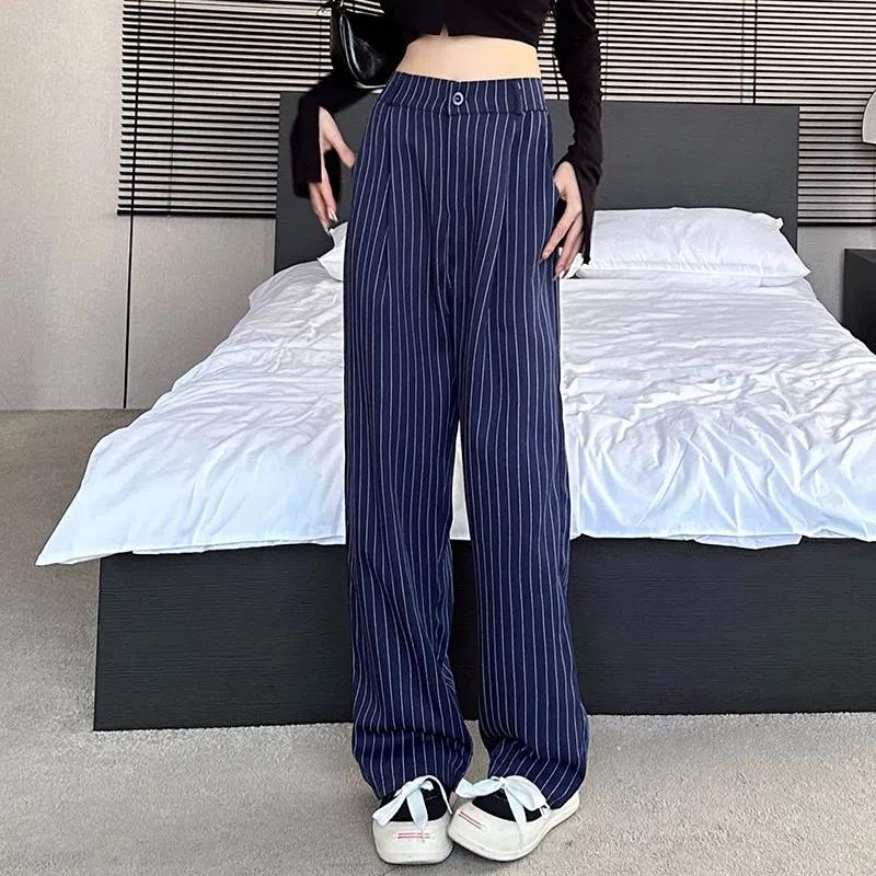 Graue gestreifte Anzughose für Damen Französische High-End Lockere Lässige Weitbeinige Hose Ins Trendige Nische Gerade Hose