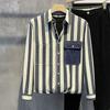 2024 Spring Autumn Men's New Splicing Square Collar Button Pocket Fashion Stripe Minimalist Casual All-match Long Sleeve Shirts