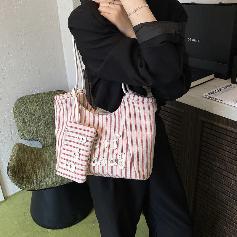 Bags Women's New Trendy Fashion Striped Class Commuter Shoulder Bag Large Capacity Tote Bag