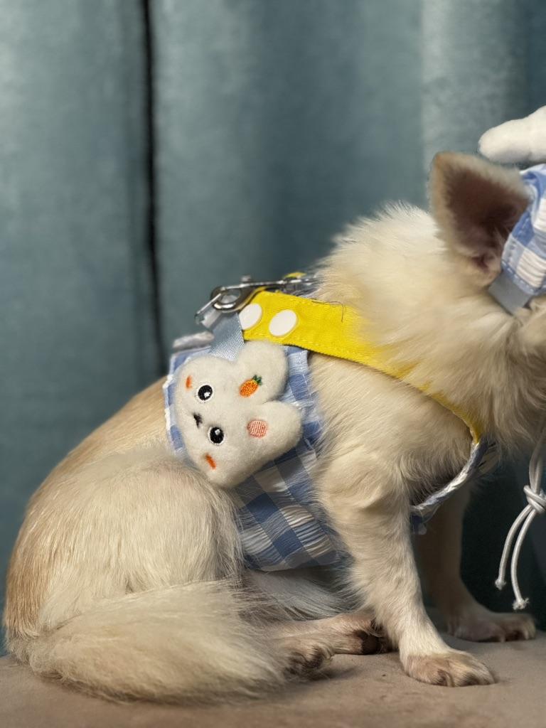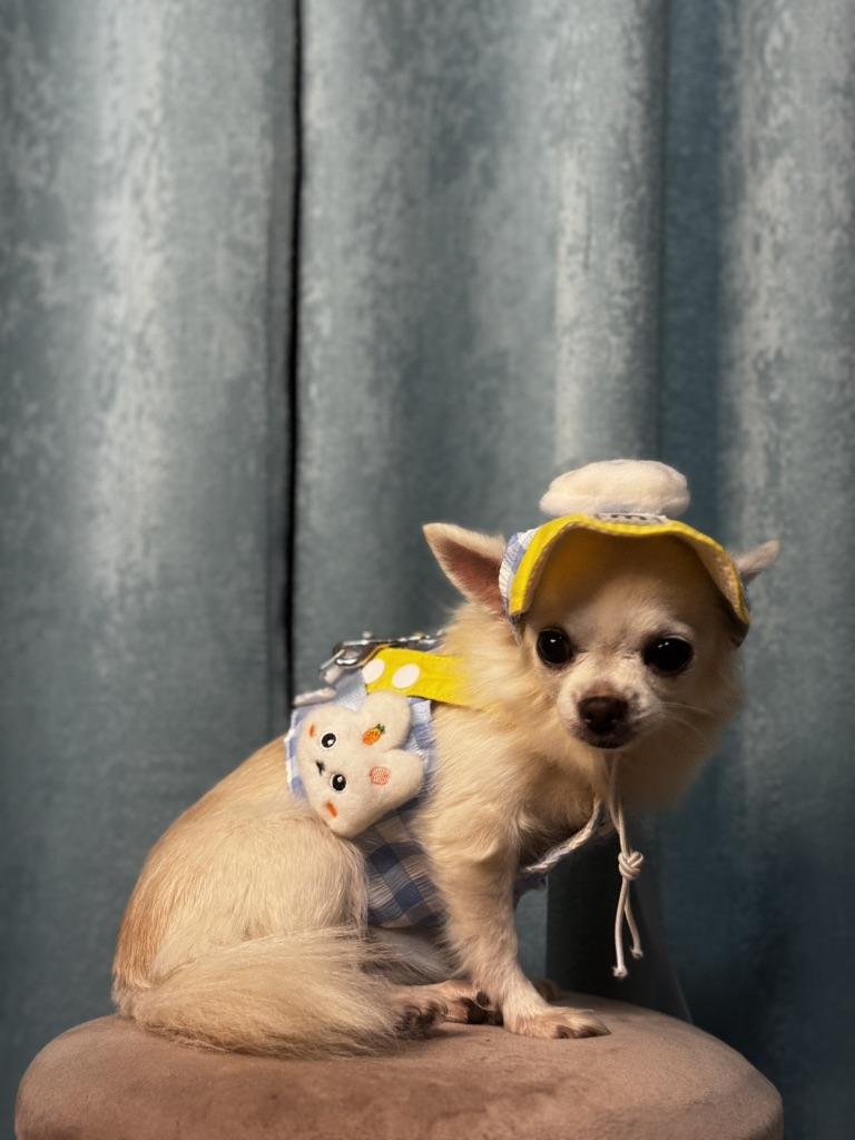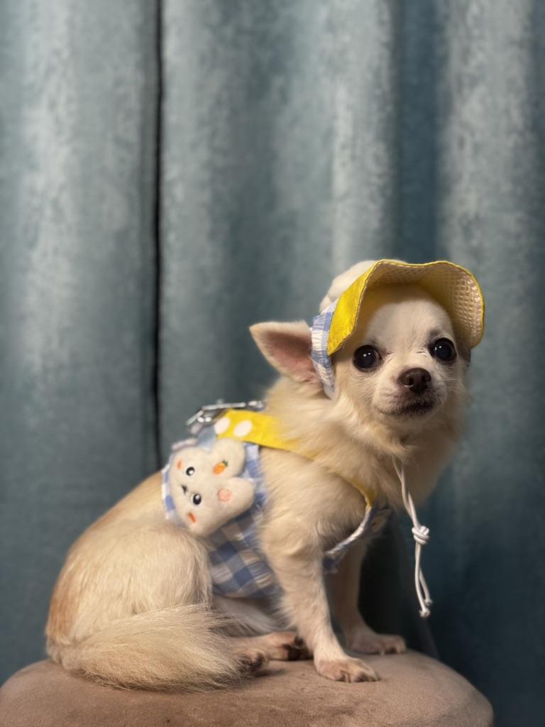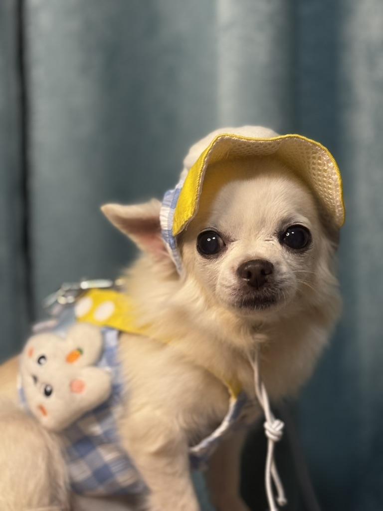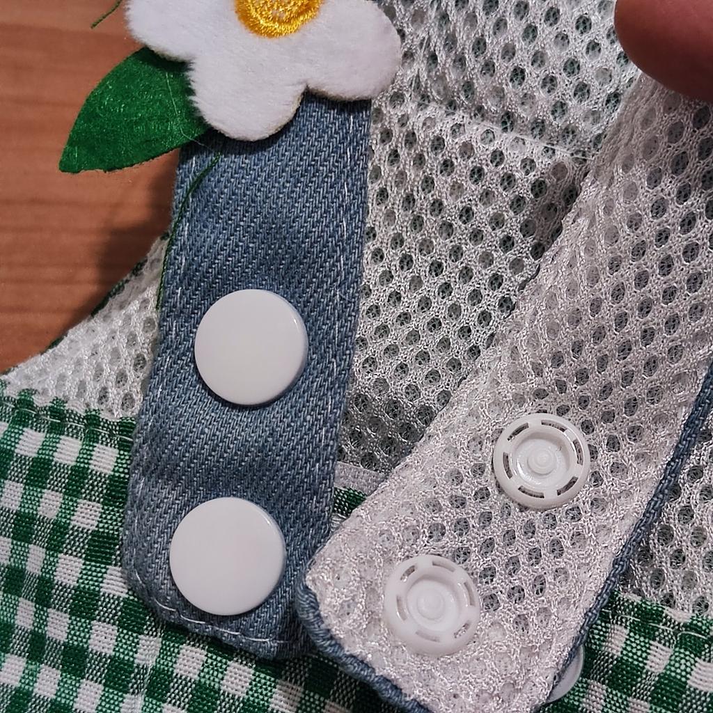 Entzückende Kleidung für den Hund 🐶 Ein schickes Sommer-Set aus Kappe und Trägertop, einfach unbeschreiblich niedlich! Alle Details sind sehr hochwertig verarbeitet, im Lieferumfang ist eine ausreichend lange Leine enthalten, aber man kann auch seine eigene befestigen. Die Farben sind hübsch hell, der Stoff fühlt sich angenehm an, es gibt ein Futter. Die Kappe ist verstellbar, lässt sich leicht befestigen und hält gut.. Der ruhigen Chihuahua-Hündin hat es ausgezeichnet gepasst, sie hat nicht versucht, sich aus der Kleidung zu winden, und die Größe war gut. Das Oberteil hält gut mit Klettverschluss, die Träger können verstellt werden.