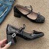 Dicke hohe Absätze und leichte Mund-Einzelschuhe für Damen Frühling und Herbst neu retro mit Rock Mary Jane kleine Lederschuhe