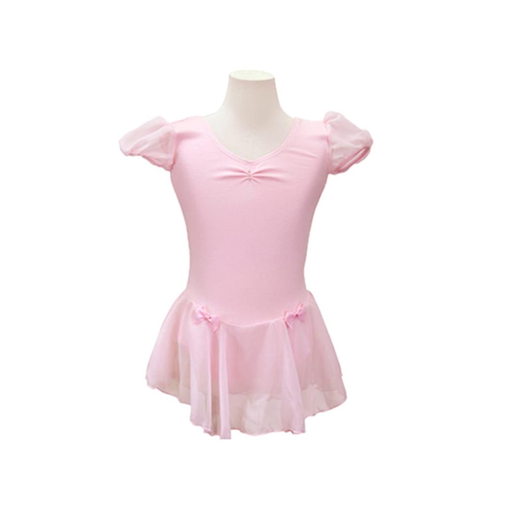 This elegant and gorgeous princess-design leotard features a sequined bust that children will love, a gathered back, and soft puff sleeves that will make your little one feel like a princess. The two ribbons on the skirt add a nice accent. This leotard will bring out the cuteness of your little girl to the fullest.