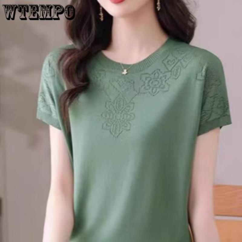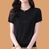 Rundhals Dünnes Lockeres Kurzarm-T-Shirt Damen Eisseide Strickpullover