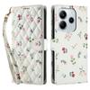 Brieftasche Hülle für Xiaomi Redmi Note 14 5G/Poco M7 Pro 5G Rautenmuster Blumendesign Leder Klapphandyhülle mit Riemen