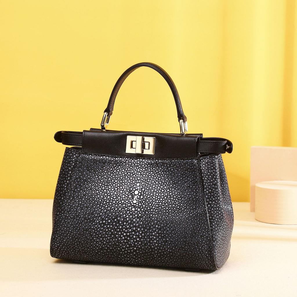 Eine klassische High-End-Damenhandtasche mit einem glänzenden Perlfischmuster, modisch und praktisch. Es eine Umhängetasche