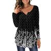Modisches Damen-Oberteil mit Rundhalsausschnitt, bedruckten Knöpfen, langen Ärmeln und asymmetrischem Saum