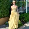 Gelbes florales Cutout-Taillen-Spaghettiträger-langes Strand-Schwingkleid