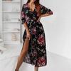4.it verfügt über eine Wickel-Fit-and-Flare-Silhouette, einen wunderschönen V-Ausschnitt, eine hübsche Taillenbinde, skurrile Blumenmotive, Engelsärmel und einen Rüschensaum