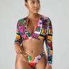 Neuer langärmliger Reißverschluss-Bikini hochtaillierter Damen-Split-Badeanzug konservativ Sonnenschutz Strandbadeanzug modisch