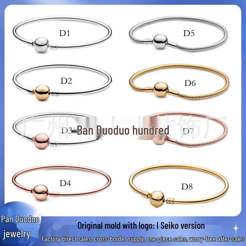 Panjia Dora S925 Versilbertes Schlangenkettenarmband mit Rundverschluss für Damen