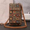 Versatile Bohemian Chic Crossbody Wallet - Lightweight Vegan Leather with Geometric Pattern, Adjustable Strap, and Secure Zip