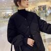 Damen Herbst Winter Einfarbig Diamantmuster Kragenlos Rundhals Mode Kurze Baumwollwattierte Jacke Leichter Baumwollmantel Oberbekleidung