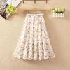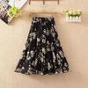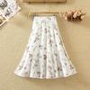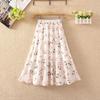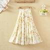 Qooth Damen A-Linien Blumen Chiffonrock Weiter Saum Mittellang Elastischer Bund Freizeitrock QT2665