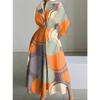 Plus Size Commuter Fashion POLO Neck Lining Long Short Sleeve Loose Pendulum Dress