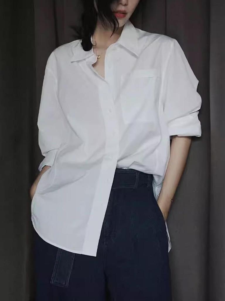 Frühlings Damen Weißes Baumwollhemd - Lässige lockere Passform, High-End-Stil, Pendlerbekleidung