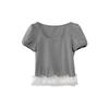 Interpret Beauty Sommer 2025 Süße Spitze Schlankmachendes T-Shirt mit eckigem Ausschnitt und kurzen Ärmeln S5012