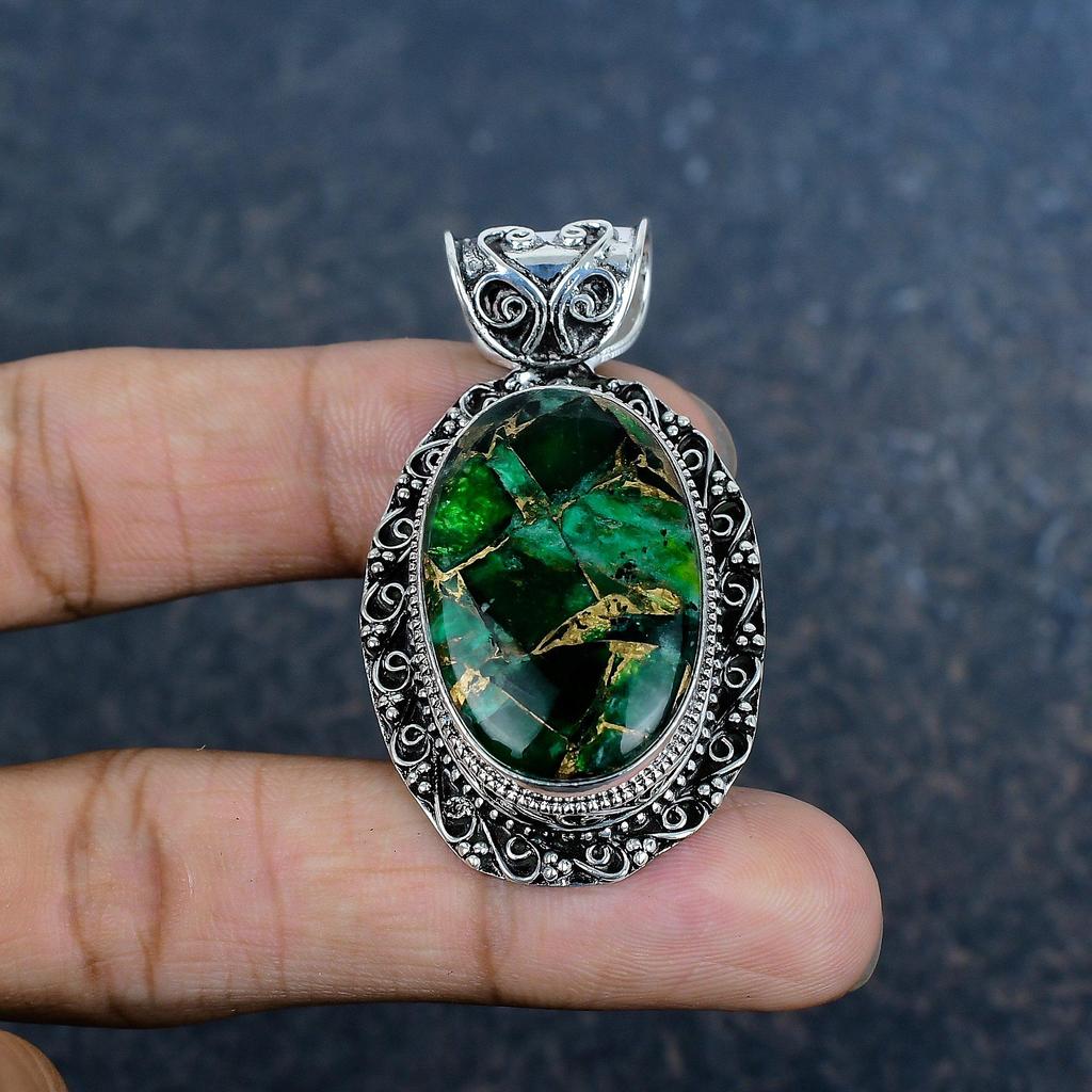 Grün Türkis Kupfer Handgefertigter Edelsteinschmuck, 925 massiv Sterlingsilber Anhänger Wunderschöner Schmuck, Für Thanksgiving