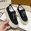 Dicksohlige elastische Ein-Pedal-Canvas-Schuhe für Damen, neue vielseitige atmungsaktive Freizeitschuhe, erhöhende kleine weiße Schuhe, Board-Schuhe für Damen