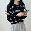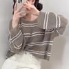 2025 Fashion Long Sleeve Stripes Pullover Sweater Women Loose Knitted Casual Thin Office Short Blouse Casual Simple Hollow Out O-neck Elegant Tops