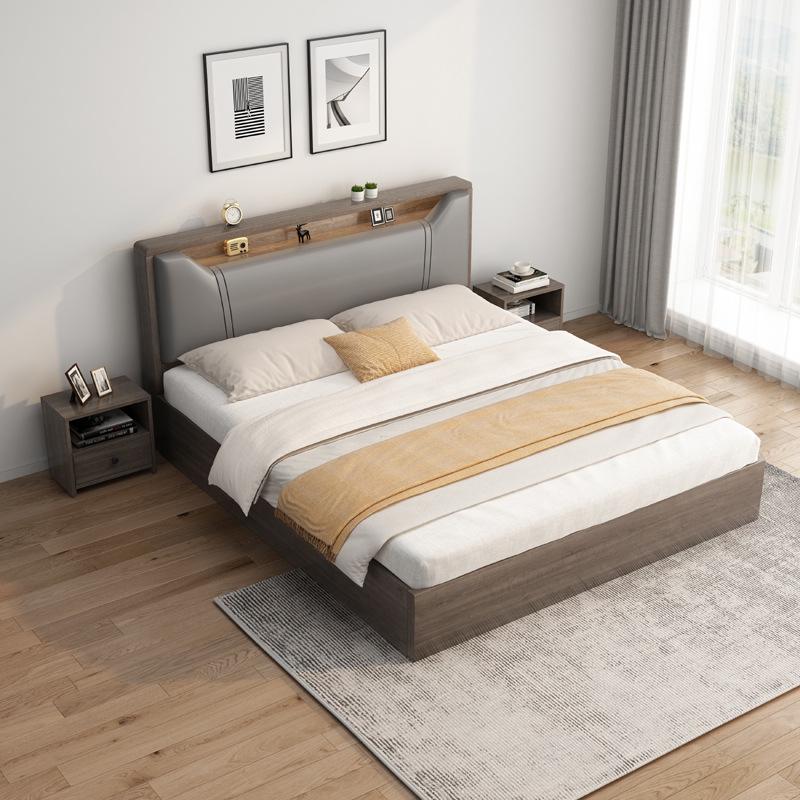 Modern Minimalist Solid Wood Panel Bed - Double (1.8m) or Single (1.2m) for Master Bedroom or Rental Room