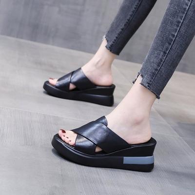Sommer Polyurethan-Boden Sandalen Keilabsatz Zehenfrei High-Heel Pantoletten Große Größe 42 Lässige Damenschuhe
