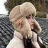 2025 1 Stück Retro Lei Feng-inspirierte Plüsch-Winter-Jagdmütze, leichte Polyester 100% Fitted Fliegermütze mit Ohrenschutz,