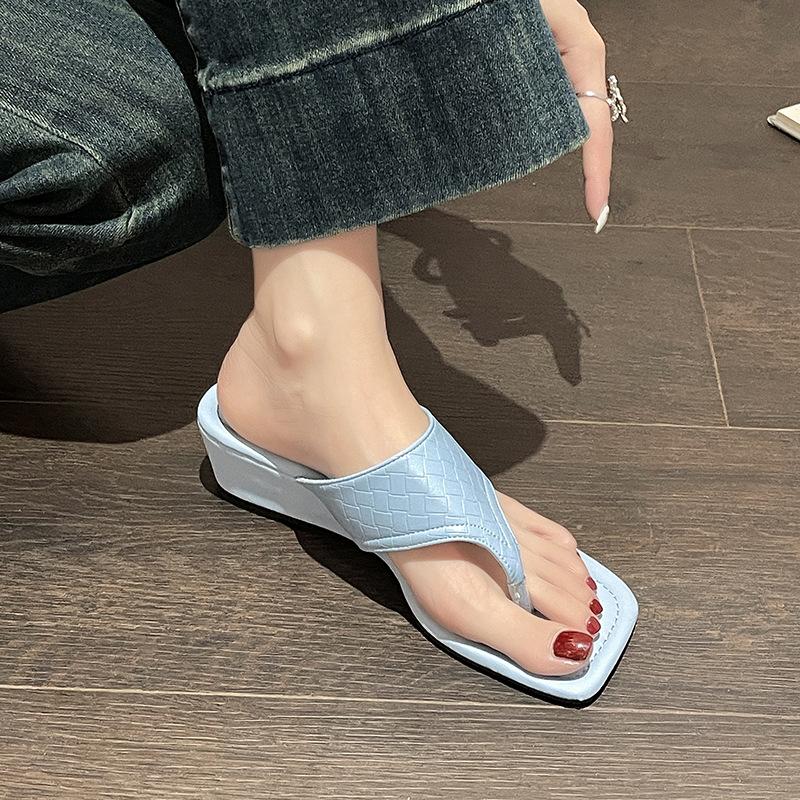 Retro simple and versatile slope heel flip-flops women's summer new casual skirt slippers summer sandals