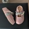 Retro vielseitige Mary Jane Schuhe mit runder Spitze, Frühling und Sommer neu, Perle, lässig, flache Sohle, Taschenkopf-Slipper