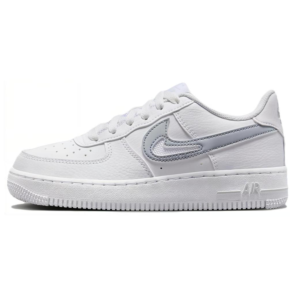 New Nike Air Force 1 GS Cut Out Swoosh - White Photon Dust FQ2413-100