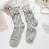 Lange Damen Socken Hohe Qualität Einfarbig Schleife Süße Socken Femme Netz Aushöhlen Niedlich JK Damen Ballett Bequeme Lockere Socken