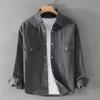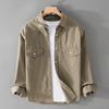 Cordhemd im Retro-Stil mit langen Ärmeln für Herren, Frühling/Herbst, Herren-Freizeithemd mit Umlegekragen, doppelten Taschen und Knopfleiste, bequemes Oberteil aus reiner Baumwolle