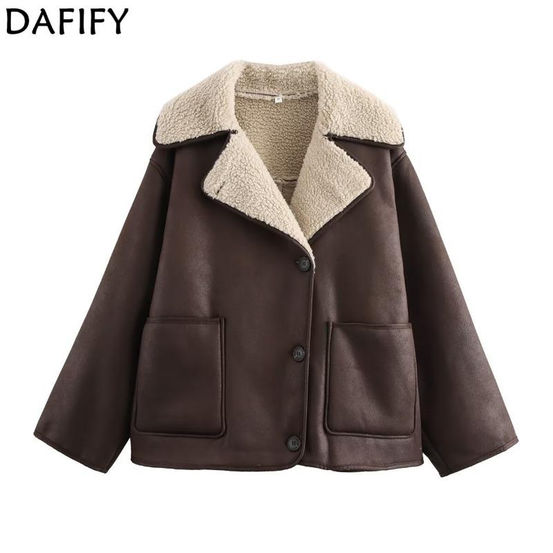 DAFIFY Damenmode, lässig, einfarbig, Herbst-Winter, langärmelig, POLO-Ausschnitt, Jacken und Mäntel