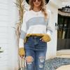 Damen-Pullover, lässig, lässig, Streifen, Kontrastfarbe, kurz, langärmelig