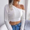 Modischer, lässiger, schulterfreier, langärmliger Taillenpullover für Damen