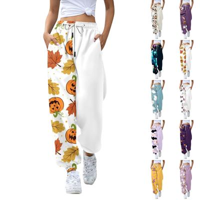 Damen Casual Fashion Halloween Printed Freizeithose Jogginghose Hose Kordelzug Elastische Taille Kordelzug Kordelzughose