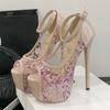 Eilyken Street Style Print Flower Buckle Strap Platform Sandals Women Sexy Stiletto Heels Nightclub Stripper Shoes Zapatos Mujer