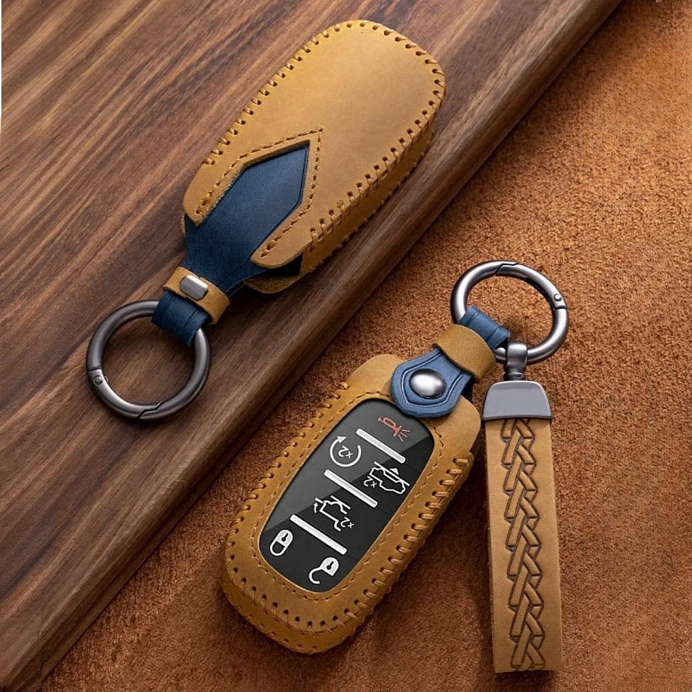 Leder Auto Schlüsselhülle Abdeckung für Dodge RAM 1500 2500 3500 4500 5500 TRX Pickup 2019 2020 2021 2022 Chrysler Jeep Grand Cherokee