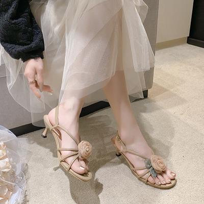 Florale Sandalen mit schmalen Riemen, Designer-Marke, für Damen, Sommer, offene Zehen, Pumps mit niedrigem Absatz, elegant, Partykleid, Schnalle, High Heels