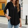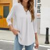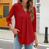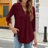 Damen Kragen V-Ausschnitt 3/4 Ärmel Hemden Business Casual Oberteile Locker Arbeit Blusen