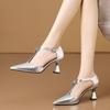 Frühling Sommer Damen Sandalen Spitz Zehenbereich One Kick Seitenausschnitt Damen High Heels Gold Silber Mode Bankett Sandalias De Mujer