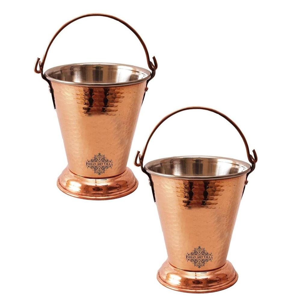 Eimer aus Stahl mit gehämmertem Kupferdesign, Serviergeschirr & Tischgeschirr für Zuhause, Hotel & Restaurants, Volumen-400 ML, 2er-Set