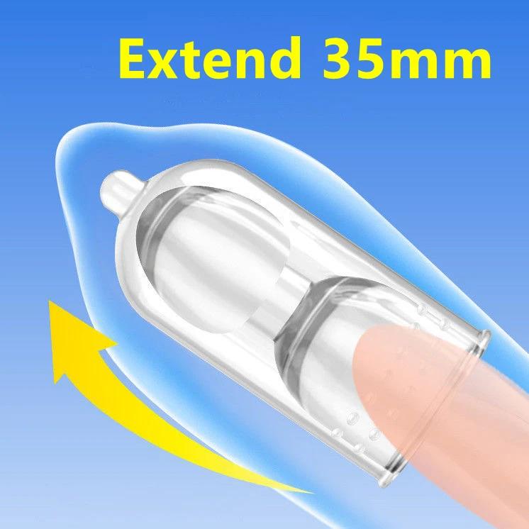 Verlängern 5cm Penis Hülle Wiederverwendbares Kondom Verzögern Ejakulation Sexspielzeug für Männer Penisring Männliche Eichel Hülle Verlängerer Vergrößerung