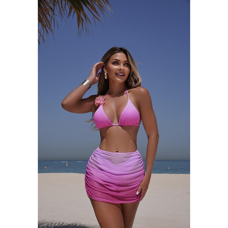 Neuer Sexy Neckholder Stufenrock Bikini Neuer Damen Badeanzug Damen Bademode Dreiteiliges Bikini-Set Badeanzug