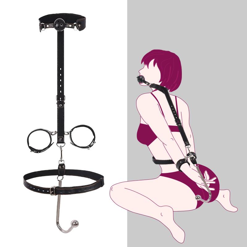 Leder & Metall Bondage-Ausrüstung für Frauen mit Analhaken, Fesselset für Paarspiel, SM Vorspiel- & Spanking-Spielzeug