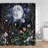 Astrologie Duschvorhang Sternenhimmel Vollmondnacht Grün Magische Pflanzen Pilz Badewannenvorhang Vintage Dunkles Badezimmerdekor Für Zuhause