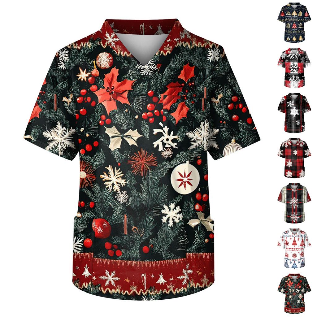 Herren Kurzarm V-Ausschnitt Druck Brusttasche Pflegeoberteil