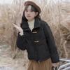 Damen Winter Kurzer Hornknopf Wattierter Mantel Lockerer Schnitt Figurvergrößernder, dicker, warmer Baumwollmantel Oberbekleidung