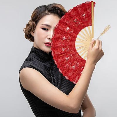 Spitzen-Faltfächer mit Quaste, hohle Rippen, Vintage, europäisch, Tanzaufführung, Party