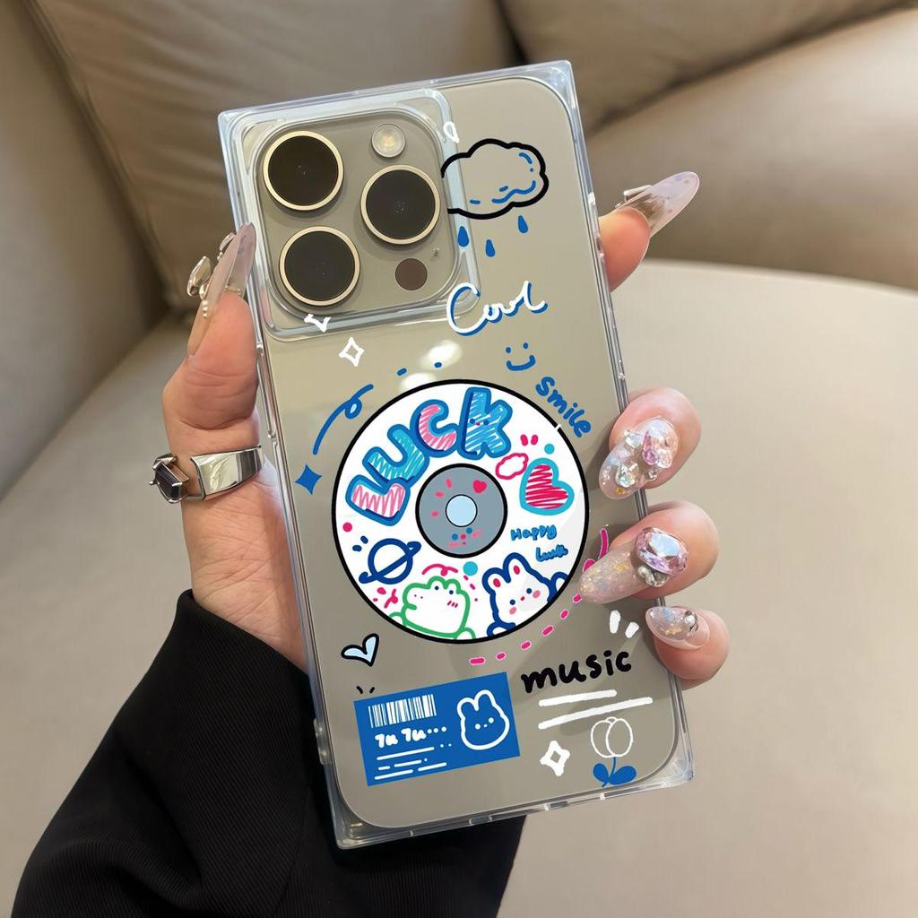 Quadratischer Rückenschutzhülle Transparent für iPhone 12 11 13 15 Plus 16 ProMax 14 Pro Max Anti-Sauerstoff, Englisches Schallplattenmuster Gehäuse
